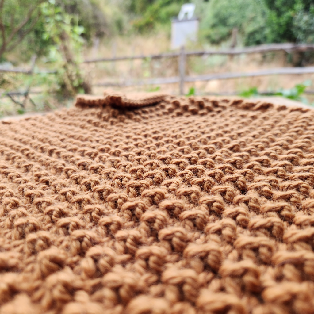Luce una prenda con alma y tradición. Este poncho ha sido tejido cuidadosamente a mano a palillo, utilizando lana de oveja 100% natural, lo que garantiza una calidez excepcional y una textura auténtica que solo las fibras naturales pueden ofrecer.